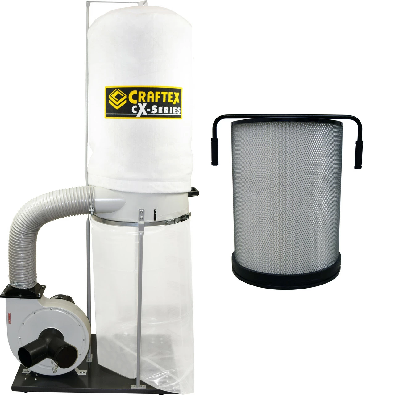 One of Bust Bee Tools best-selling dust collectors in Canada is now available as a combo for a limited time only! As part of the growing line of Craftex CX-Series woodworking equipment, we are proud to offer the CX424 a 1.5-HP Dust Collector. This single-stage dust collector is outfitted with a powerful 1.5 HP 120V single-phase motor that drives a 10″ steel impeller creating a strong airflow of 950 CFM. This machine will handle any machine in your shop from a drum sander to the most demanding machines like the Jointers and Thickness Planers with ease. The CX424 is equipped with a “Y” that goes from 5″ into 2 x 4″ dust ports to allow for connectivity of multiple machines. The 1 Micron top filter will help keep the air in your shop clear of all dust particles larger than one micron. The convenient collection bag will hold up to 0.5 cubic meters of sawdust. All of our CX-Series machines are backed by our 3-year warranty.