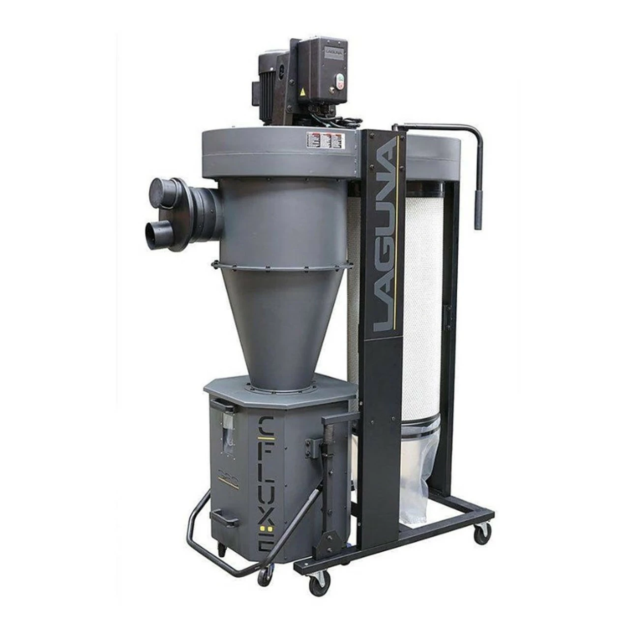 For the popular C|Flux cyclone dust collectors, weโve kept the user-friendly aspects of the previous generation while adding smart new features to improve the user experience. Among the upgrades is a dual-paddle filter cleaning design, and a max level indicator to increase filter longevity. The iconic octagonal drum grows to an impressive 46-gallon capacity on the C|Flux 2 and 3 models, and the newly redesigned 3-piece drum construction requires far fewer joints and fasteners cutting assembly time, while the locking casters provide additional stability.